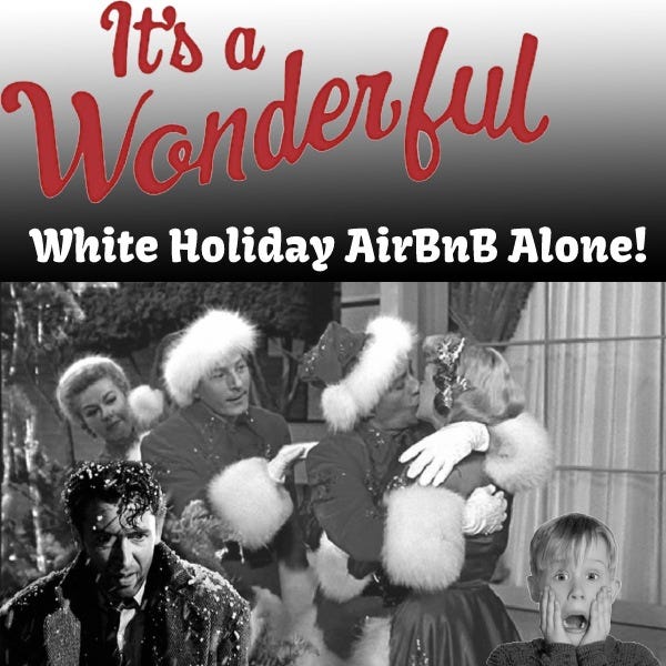 That time when you check your NextDoor App while on vacation and discover that the Building & Loan has foreclosed on your cozy bed and breakfast, which was taken over by a right-wing musical troupe that trashes the furniture, puts on a show, and leaves Macaulay Culkin behind, who burns the place down… but then gets his wings.